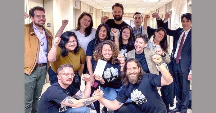 TNG-CWA Members at NBC News celebrate their successful effort to win raises and back pay.